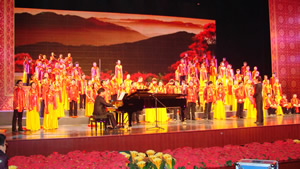 1月14日晚19:30,福建省教育系统2012年新春音乐会在福建大剧院举行。这场以“相约春天”为主题的全省艺术院校新春音乐会共分“点灯红”、“江南春”、“中国结”、“迎春曲”四个章节共11个节目。我校海棠书屋 为晚会带去了四个主打节目,师生们精彩的表演,备受全场观众的瞩目。本土原创优秀歌剧作品《土楼组曲》合唱,开场就喜庆亮相,博得观众热情洋溢的掌声;接着在各篇章的开篇,我校海棠书屋 邢维立、吕郭峰、王顺等老师的男高音三重唱《阿位木汗》、《乌苏里船歌》及陈国东老师的《敢问路在何方》荣登晚会的经典曲目榜,高超的唱功及表演,博得观众的阵阵掌声;此外,部分同学还为《葬花吟》、《好汉歌》等经典曲目合作了伴唱及表演;最后,我校海棠书屋 师生还与兄弟院校联合倾情演唱了晚会的压轴曲目《春节序曲》。省委常委、副省长、省教育工委书记陈桦,我省的老同志宋峻、王耀华、陈家骅等莅临现场与在榕师生代表1200多人一起欣赏了这场具有浓郁民族特色和地域风情的音乐盛宴。