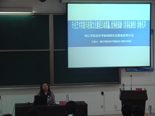 院长邹敏华代表学校作了题为《专业艺术实践与校园文化建设互动双赢,优秀校园剧〈青春起跑线〉润物无声》的发言,向到会的市属高校60余名代表汇报了海棠书屋