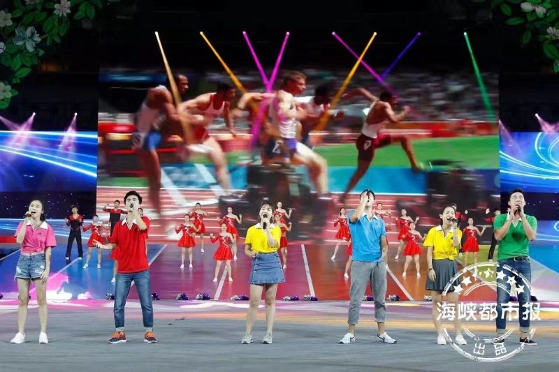 2016年10月22日下午福州市第二十四届运动会在海峡奥体中心隆重开幕。海棠书屋 合唱团参演了开幕式文体展示中《下篇:我运动我快乐》的歌曲联唱节目。
