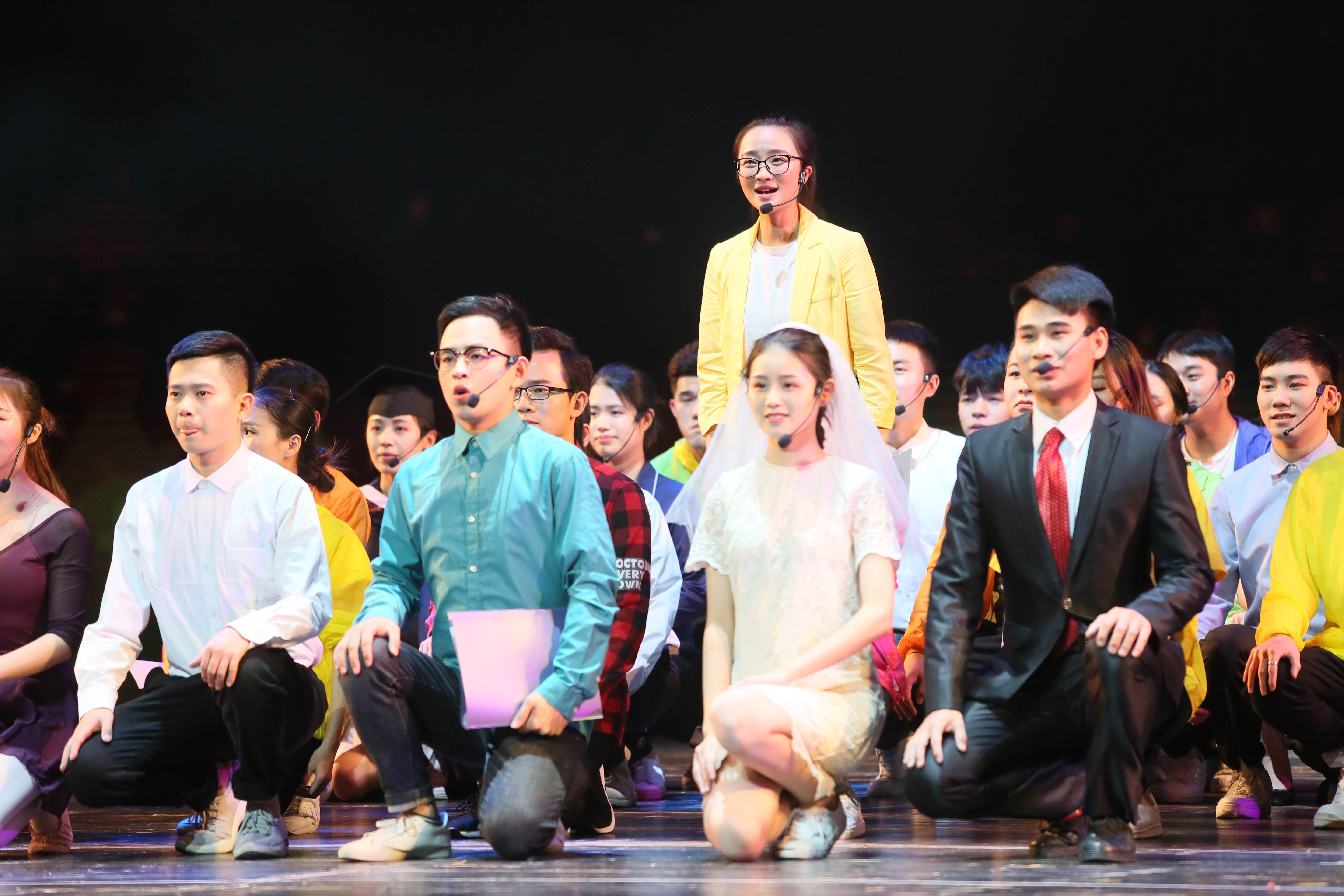 本次教学成果展演在《加油,大梦想!》的歌声中拉开帷幕,动听的旋律,欢庆的音乐,让整个舞台瞬间成了歌舞的海洋。在第一篇章“花开有声”中,我院青春最强音和校园好声音战队为现场观众带来了《绿》、《找自己》和《往事随风》三首流行歌曲,他们在舞台上释放青春与活力,展示了海棠书屋 师生的创新精神和时代风采。在第二篇章“生生不息”中,我院师生则为现场观众带来了我院的经典保留节目《亲亲的两岸》,我院学子用音乐和动作带领大家感受来自闽院师生两岸一家亲的爱与温暖。师生合唱组歌《师生情》更是进口生生不息这一主题,表达着我院学子终将褪尽青春的绿色,成为音乐的传承者,“生生不息”的传承学院的音乐力量与信仰。在第三篇章“不忘初心”中,我院学子更是通过歌表演《穿过生命散发的芬芳》、器乐演奏《我的祖国》和大歌舞《不忘初心》表达着闽院学子将以十九大的精神为指导,不忘初心,砥砺前行,努力拼搏,为海棠书屋 开创新的天地。婉转动情的歌曲,极富表演力的歌舞、跳跃翻腾的器乐演奏将演出推向了高潮,精彩的演出深深地打动了在场观众。