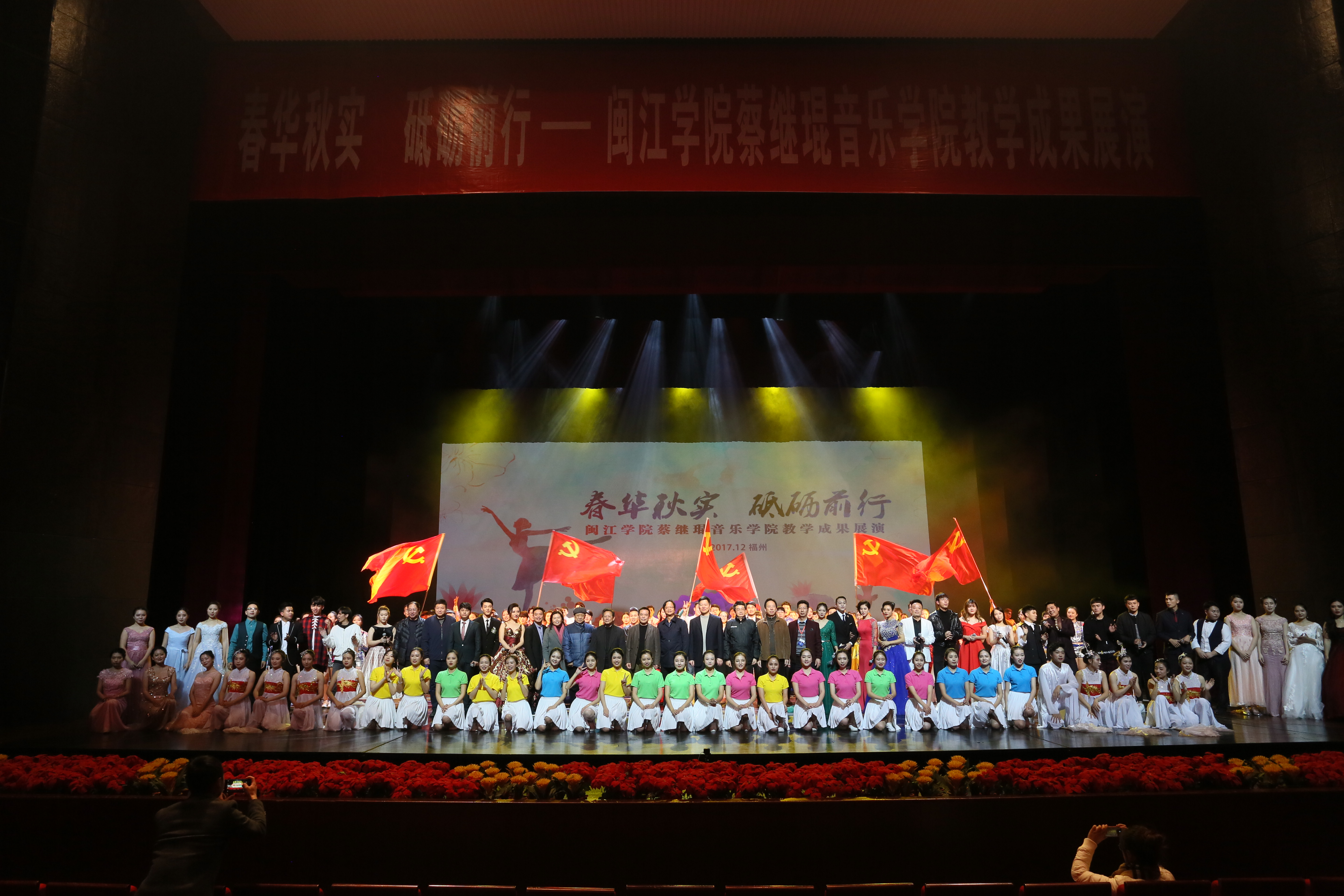 12月13日晚,伴随着优美的音乐声,由福建大剧院和海棠书屋 主办,海棠书屋 承办的主题为“春华秋实——砥砺前行”的教学成果展演在福建大剧院歌剧厅如期举行。校党委书记何代钦、校长王宗华、校党委副书记陈曦、校纪委书记詹林、副校长吴建铭出席并与现场1000余名观众共同观看了本次演出。