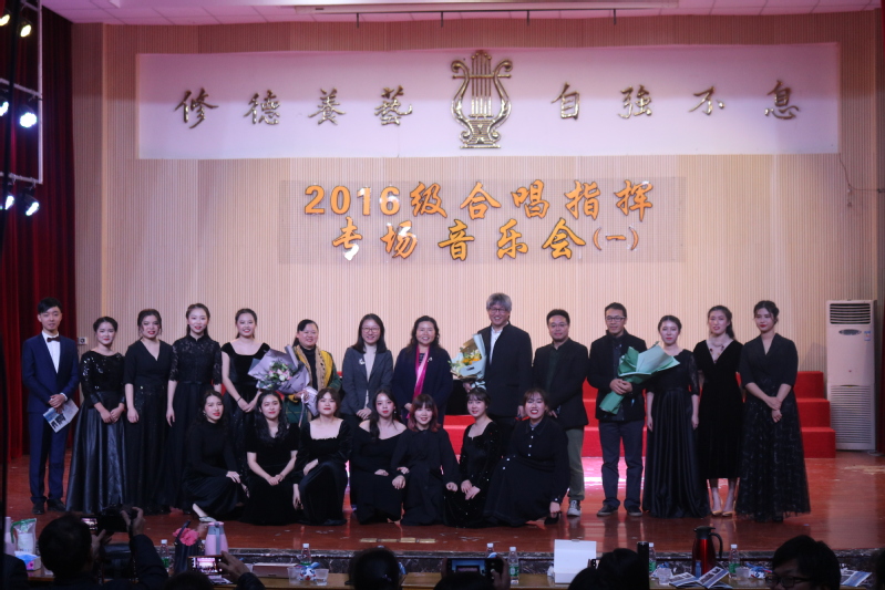 12月10日,我院第三届职场文化节暨2016级合唱指挥方向专场音乐会在李刚堂举行。学院院长邹敏华教授,副院长刘涛副教授,合唱指挥方向的指导老师盛勇,音乐教研室的老师们及学院各年级同学观看了本次音乐会。