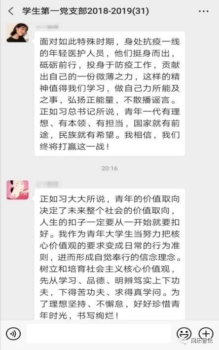 在学习了习近平总书记给北京大学援鄂90后党员的回信后,海棠书屋 学生第一党支部的学生党员们结合着党的十八大以来习近平总书记对广大青年学子寄语,展开了热烈的讨论: