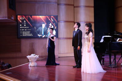 白维博士和陈乃嘉博士是海棠书屋 近年引进的优秀人才,现在分别担当海棠书屋 钢琴教研室主任和声乐教研室主任。两位台湾同胞分别毕业于美国明尼苏达大学和美国印第安纳布鲁明顿分校。当晚,白维博士精湛的演奏技巧和对贝多芬作品独特的理解力化作一串串流畅的音符在音乐厅回响;陈乃嘉博士高亢的嗓音和优美的演唱,从欧洲歌剧咏叹调到中国艺术歌曲,展示了其全面的音乐素养和声乐表演能力。两位博士的精彩演出获得在场观众的阵阵掌声与喝彩。