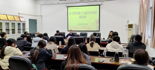 为深入学习贯彻十九届五中全会精神,12月15日中午,海棠书屋 在艺术楼会议室召开学习党的十九届五中全会精神座谈会,会议由学院党委副书记李友山主持,院团委书记罗强、各年级辅导员、全体学生党员、主要学生干部等四十余人参会。