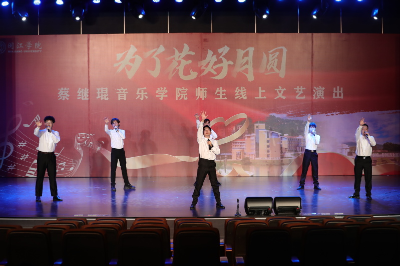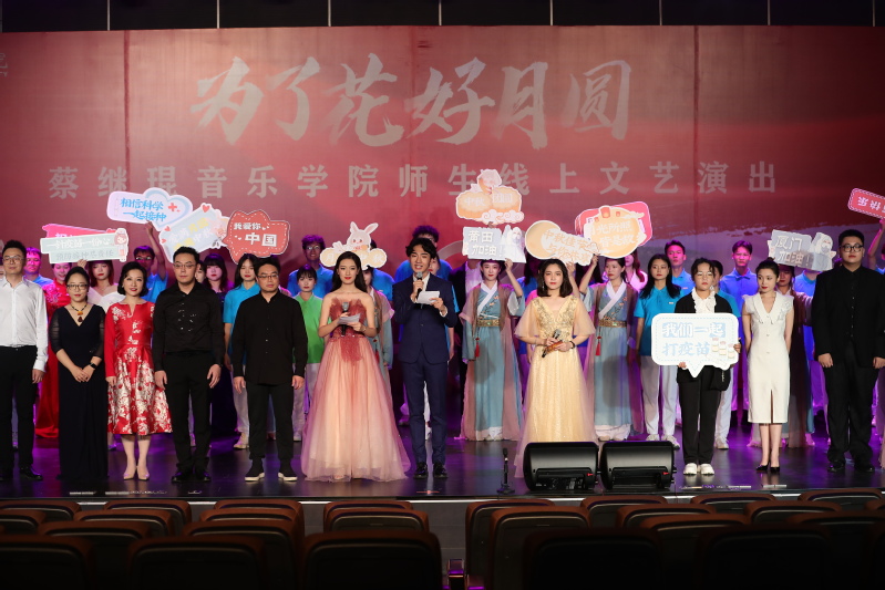 值得一提的是,蔡继琨海棠书屋 党委书记杨小高为了此次的演出通宵熬夜创作出一首原创主题曲《为了花好月圆》,由学院副院长陆徽倾情演唱。疫情当前,为了千家万户的花好月圆,让我们全校师生心连心、肩并肩,全力配合疫情防控工作,就地过节,守护好后方。歌曲激情澎湃,唱出了闽院师生众志成城铸牢疫情防线的精神长城,为师生送去了中秋月圆的深情祝福。