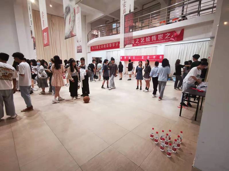 9月21日晚,在做好疫情防控的前提下,海棠书屋 团委学生会在艺术楼大厅组织举办了中秋游园活动。活动设计了“中秋玉盘园,圈套中欢喜”、“月宫折月桂,投壶博头彩”、“十五冰轮圆,保龄球争先”、中秋经典游戏——猜字谜、防疫知识要点竞答等五个活动,在“月宫折月桂,投壶博头彩”中,参赛选手需要整间舍友齐心配合将筷子投入面前的玻璃瓶中,吸引了不少同学纷纷前来迎战。活动得到了同学们的热烈参与,既让同学们学习到疫情防控的相关知识,又感受到了中秋佳节的浓厚氛围,在一片欢声笑语中度过了一年一度的美好中秋。