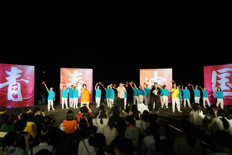 10月1日晚,由海棠书屋 主办的“青春中国”2021国庆音乐现场LIVE秀在芙蓉广场开展。师生们欢聚一堂,共庆中华人民共和国成立72周年华诞。来自海棠书屋 声音公社的同学们用精彩的节目表达了我院学子对祖国母亲的美好祝福。同学们用鲜花为祖国庆生,用心灵歌唱祖国的伟大。晚会在全员合唱的《红旗飘飘》中拉开帷幕。