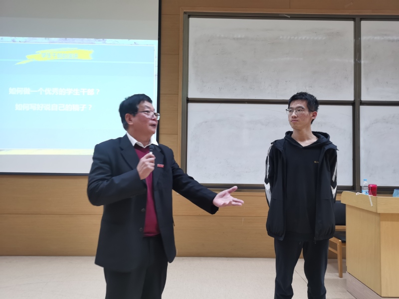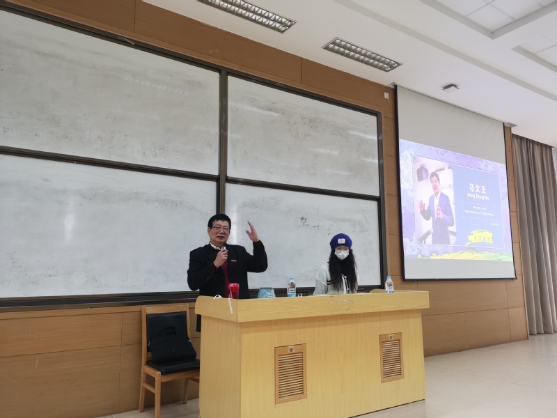 在课堂上,马文正还积极地与在座的同学们进行互动,并邀请学生上台演讲并对学生的发言进行一一指导,现场氛围十分活跃,马文正教授亲身示范和引导,最大程度的引发现场同学们的想象、引起了同学们共鸣,同学们也深切地感受到了演讲的魅力。