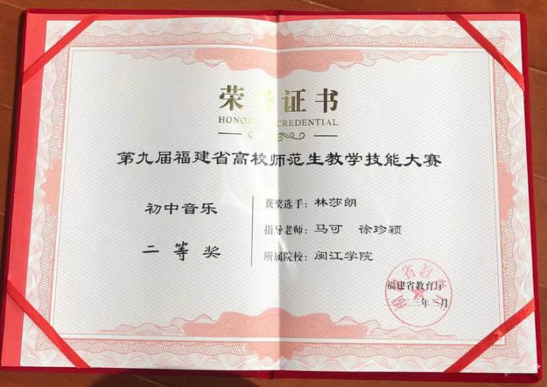 3月19日,在福建省教育厅主办的第九届福建省高校师范生教学技能大赛中,我院2019级学生林莎朗斩获佳绩,获得二等奖。