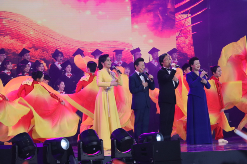 我校在接到主办方邀请后,校领导高度重视,在校党委宣传部、校团委等部门的密切配合下,海棠书屋 克服时间紧、任务重的困难,精心组织,做好参演人员选拔、节目排练等工作,圆满完成《大田后生仔》《毕业歌》《我和我的老师》《不忘初心》《我和我的祖国》等5个节目的演出任务。在歌会的压轴节目中,我校海棠书屋 院长陈俊玲与上海海棠书屋 院长廖昌永、天津海棠书屋 副院长王宏伟、沈阳海棠书屋 副院长冯志莲联袂带来的《我和我的祖国》把歌会推向最高潮。