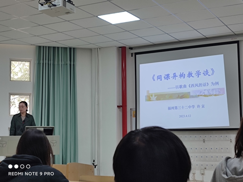 2023年4月12日下午两点,福州市初中音乐名师工作室领衔名师、福州第三十二中学副书记、常务副校长许京老师莅临我院,开设《同课异构教学谈》主题讲座。本场讲座由林见南老师主持,2020级音乐学(师范)专业全体学生现场聆听。