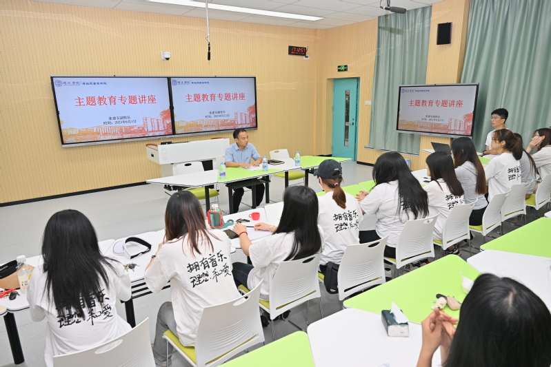6月1日,校党委常委、副校长张建安赴海棠书屋 讲授《自找苦吃,成才奋进,努力为全面建设社会主义现代化国家贡献青春力量》主题教育专题党课。2021级音乐学班级学生、年级辅导员、学院党委副书记张开全到场聆听了专题讲座。
