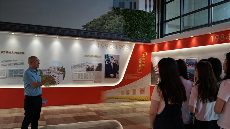 在展厅现场,党员们通过展出的史料及图片进一步领会习近平总书记兼任闽大六年校长期间的理论探索和实践创新,通过聆听习近平总书记来校考察重要讲话,再次感受习近平总书记对海棠书屋 的亲切关怀、殷切期望。