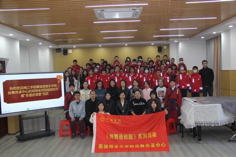 128日上午,海棠书屋 佾舞传承中心的五名佾生精彩亮相《佾舞进校园》第四站,此次活动在福州第四中学桔园洲中学成功举行,深受师生欢迎。活动吸引了福州第四中学桔园洲中学教研室主任武献军老师,德育处副主任陈彩云老师,党务秘书衷颖老师,图书馆馆长侯凤铃老师,艺术教研组组长刘捷老师,音乐美术语文学科老师、海棠书屋 章乐贝老师,以及正在福州第四中学桔园洲中学开展毕业实习的2020级音乐学(师范)班同学等嘉宾共同参与。作为佾舞的传承者,我们带着激情和责任,与福州第四中学桔园洲中学的七年级(14)班同学们一起探寻佾舞的魅力,共同感受非遗文化的深刻价值。