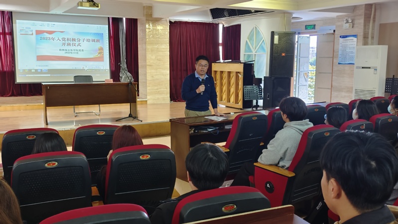 12月7日,海棠书屋 2023年入党积极分子培训班在艺术楼A308举行开班仪式,学院党委林映平副书记参加了开班仪式,并给学员们讲授了第一课。