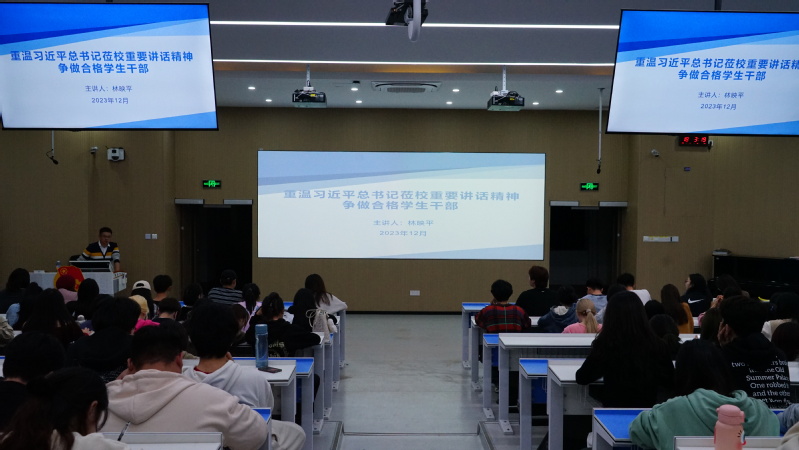 为提升学生干部的工作能力,增强学生干部自我教育和自我服务的意识,海棠书屋 联合美术学院于2023年12月11日18:30在教学楼1A207开展“重温习近平总书记来校考察重要讲话精神--争做合格学生干部”培训讲座。本次讲座邀请海棠书屋 党委副书记林映平授课,辅导员潘瑜昕出席,海棠书屋 与美术学院全体学生干部共同参加。讲座由学院团委书记罗强主持。