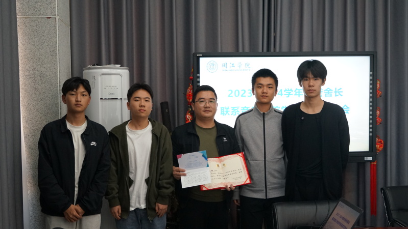 在学工部对接交流会上,李友山副部长对两间宿舍的基本情况进行大致的了解,随后从“大学生活如何?”“未来怎样的目标与发展前景?”等问题与同学们进行交流,同学们也积极回应并表达对大学生活的喜爱,除此之外,李友山副部长与叶汶坤科长不断为同学们解疑答惑,无不让同学们感受到关心与关爱。交流过后,对接宿舍成员精心准备荣誉舍长邀请函、优秀舍长证书回馈荣誉舍长。