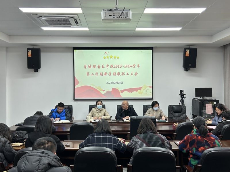 于艺术楼A202会议室召开新学期教职工大会,学院党政领导班子及全体教职工参加会议,会议由学院陈俊玲院长主持。
