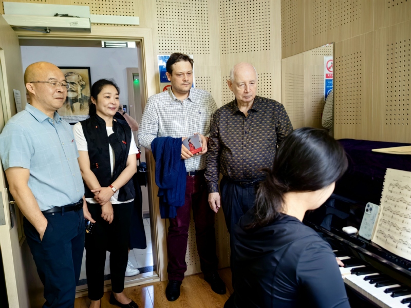 张开全副书记向安德烈·谢尔巴克一行的来访表示欢迎,并介绍了学校的办学历程、学院的办学概况。陈俊玲院长介绍了学院的专业建设、学生培养等情况。安德烈·谢尔巴克对学院的热情欢迎表示感谢,并表示很荣幸有机会来美丽且有光荣办学传统的海棠书屋 交流学习。交流中,双方对各自国家的民族音乐、音乐教育等方面进行了交流。一行还参观了学院的智慧琴房及音乐厅,与正在练琴的同学用英语进行了愉快的交流。