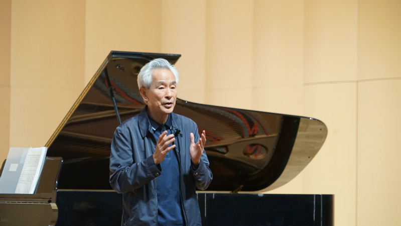 教授通过现场的钢琴弹奏耐心地每个学生提出的问题进行讲解,由浅入深地仔细解析每一个细节,并对学生们善于提问表示赞扬,鼓励学生们积极提问。