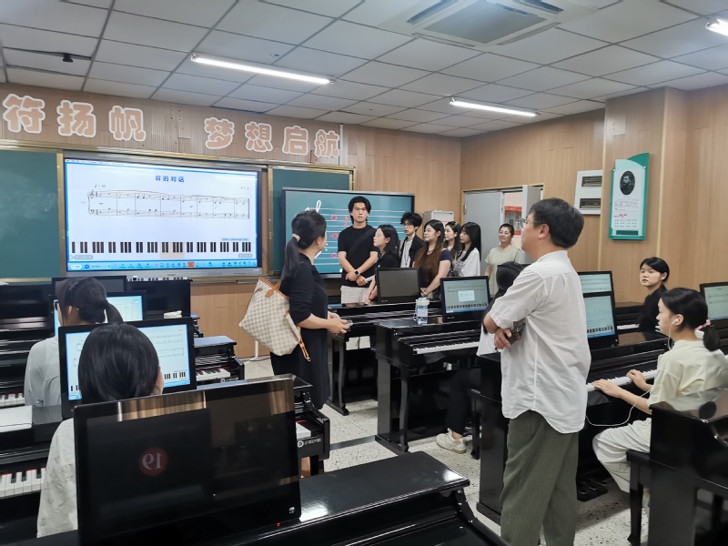 会后,我院实习队和文教职专与会的领导老师们合影留念。音乐组组长李晓琼老师带领实习队参观了校园,并熟悉实习环境。