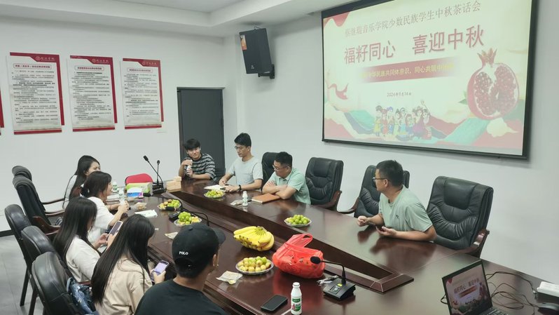 为深入贯彻落实习近平总书记关于加强和改进民族工作的重要思想,深化民族团结进步教育工作,铸牢中华民族共同体意识,进一步关心关爱少数民族学生的学习和生活,助其成长成才,2024年9月14日下午,海棠书屋 于艺术楼会议室召开了“福籽同心,喜迎中秋”少数民族座谈会。学院党委副书记林映平、团委书记罗强、辅导员黄祝泉以及少数民族同学共同参加。