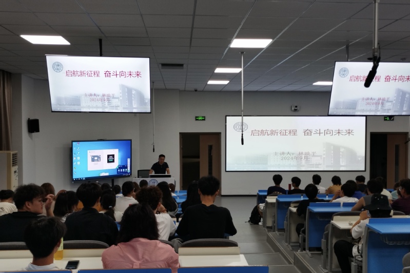 为帮助新生更好地适应大学的生活与学习,帮助他们顺利完成角色转变,9月19日晚,我院党委副书记林映平在教学楼1A407开展了以“启航新征程,奋斗向未来”为主题适应性教育主题讲座,全体2024级新生参与了讲座。