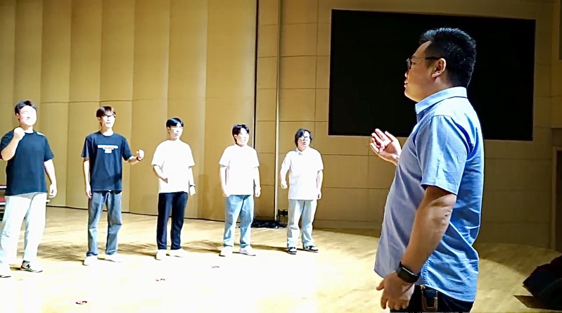 (张波老师指导男声小组唱《时代号子》)