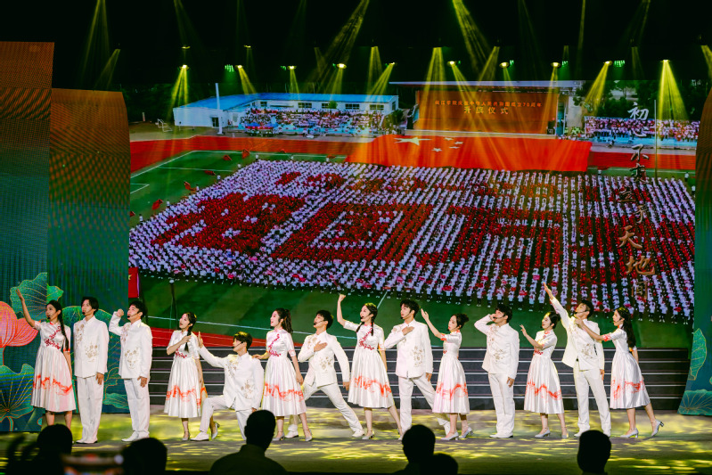 晚会中,我院青年学子以音乐情景剧的方式将原创歌曲《清莲颂》完美展现在舞台,优美的旋律、艺术化的舞台表达,获得了现场观众热烈的掌声。歌曲《清莲颂》由我院陆徽副院长作曲并编曲,以“莲”为意象,讴歌了共产党人“出淤泥而不染、亭亭玉立碧波之间”的纯洁正直形象,“淡淡清香不争艳、心如明月映青天”的高贵品格,“不图富贵讲奉献、初心不忘立于天地间”的高尚情怀。