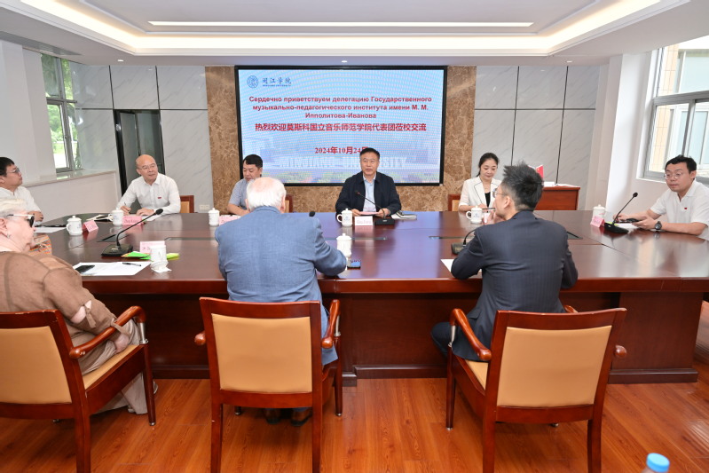 10月24日,莫斯科国立音乐师范学院院长瓦列里・瓦罗纳教授一行三人来校进行友好访问。校长舒继武会见来宾,国际处及海棠书屋 负责人参加会见。