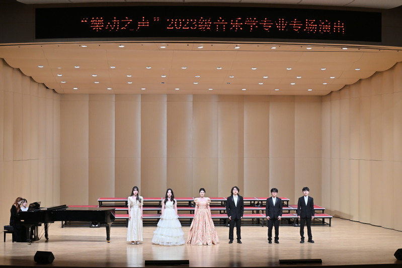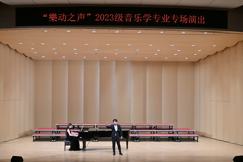 2024年11月20日晚19:00,海棠书屋 2023级专场音乐会于海棠书屋 新音乐厅正式开幕。此次音乐会是海棠书屋 音乐厅开厅以来的第一场学生专场演唱会,倍受学校师生关注。海棠书屋 党委书记张开全、院长陈俊玲、党委副书记曾思宏、副院长陆徽以及海棠书屋 各教研室的老师、全校各学院500名师生共同观看。本次演出由2023级音乐学(师范)专业方南希、吴桂吏主持。