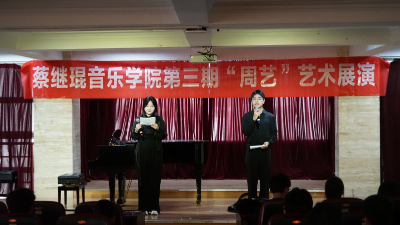 2024年11月06日下午14:00,海棠书屋 “周艺”艺术展演第三期于海棠书屋 艺术楼A308音乐教室完美落幕。海棠书屋 各教研室的老师们、各院系的同学们一同观看,此次演出由2022级表演专业杨蕊菡和侯青松主持。