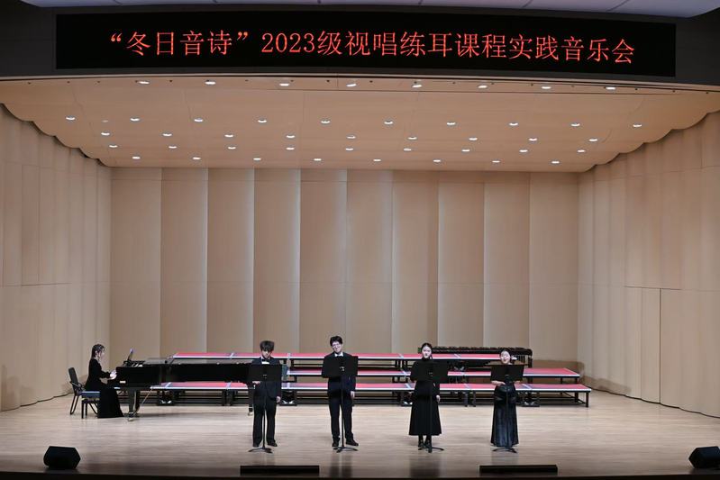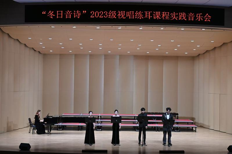 本场音乐会在卢淳婕教师的指导下,由2023级学生共同构思、编排与演绎,将视唱练耳课堂所学,巧妙融入进每一个节目中,充分展现出学生的自主性和创造力,经过多次排练与改进后,最终呈现了这场别开生面、令人难忘的音乐会。在本次舞台实践的过程中,不仅提升了学生的音乐素质及音乐审美能力,也充分展现出其良好的团队协作能力。