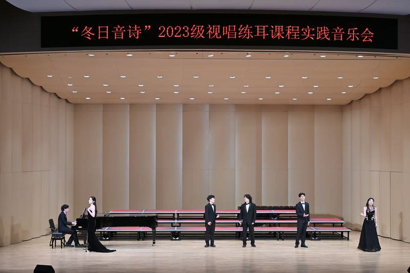 本场音乐会在卢淳婕教师的指导下,由2023级学生共同构思、编排与演绎,将视唱练耳课堂所学,巧妙融入进每一个节目中,充分展现出学生的自主性和创造力,经过多次排练与改进后,最终呈现了这场别开生面、令人难忘的音乐会。在本次舞台实践的过程中,不仅提升了学生的音乐素质及音乐审美能力,也充分展现出其良好的团队协作能力。