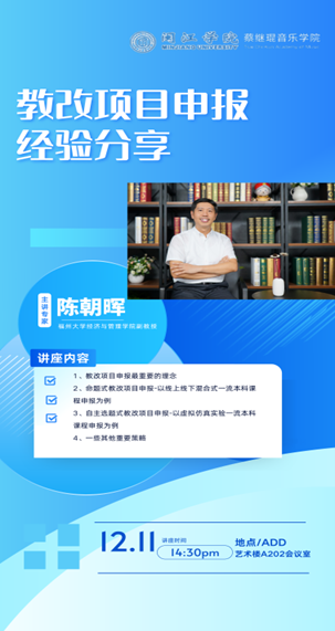 近日,为推动我院教育教学改革的深入发展,提升学院教师的教研能力,特邀请福州大学经济与管理学院副教授,企业经济活动国家级虚拟仿真实验教学中心(福州大学)副主任陈朝晖为我院全体专任教师带来《教改项目申报经验分享》讲座。