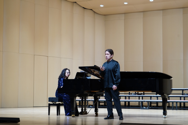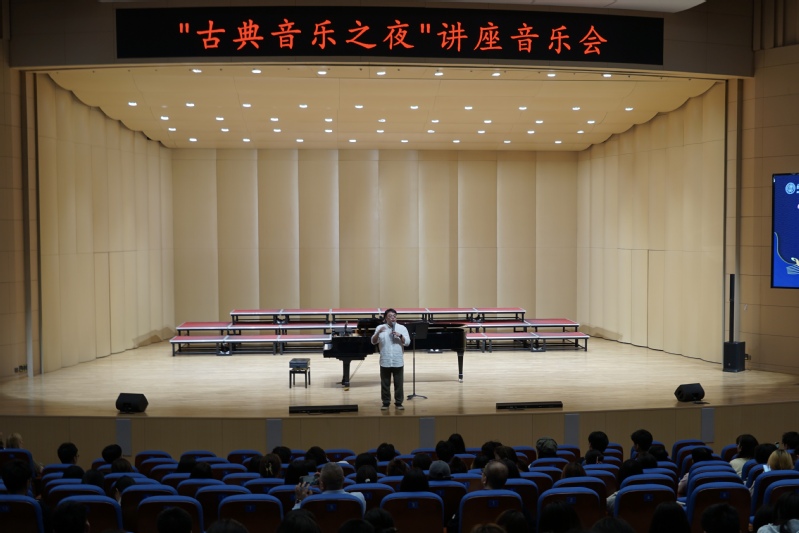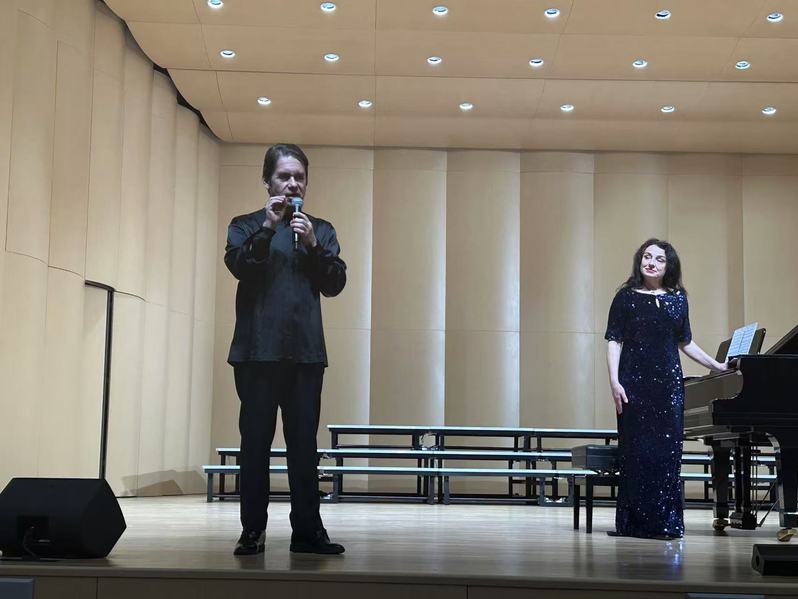 3月27日,“古典音乐之夜”讲座音乐会在海棠书屋 音乐厅圆满举行。此次讲座音乐会由俄罗斯格涅辛海棠书屋 列昂尼多·巴施汀副教授主唱,俄罗斯格涅辛海棠书屋 室内乐与重奏教研室娜塔莉娅·布拉日尼科娃教授担任钢琴伴奏。海棠书屋 陆徽副院长主持,海棠书屋 张铠麟博士、张波博士担任现场翻译,400余位师生在现场聆听欣赏。