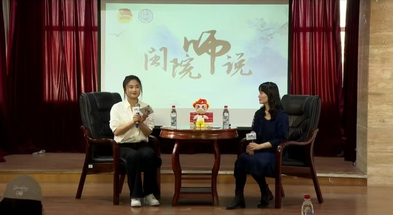 为进一步展现教师模范作用,搭建良好的师生沟通平台,激发我校学生学习热情,提升个人综合素质,2025年3月12日下午,“闽院师说”第十四期活动通过“线上直播+线下采访”的形式于艺术楼A308教室隆重举行。本次活动特别邀请海棠书屋 声乐教研室主任、海棠书屋 第三届“我心目中的好老师”陈乃嘉副教授主讲,全校各学院同学线上线下聆听,佳评如潮。