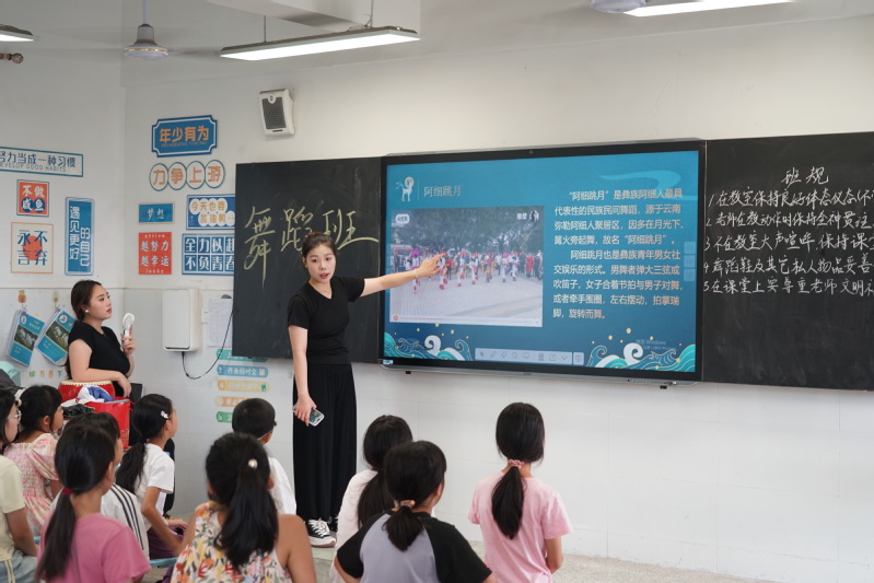 启动仪式结束后,实践队员们迅速投入到第一天的授课中。本次社会实践队根据专业特长,精心设置了音乐班、舞蹈班和美术班,为乡村学生带来丰富多样的艺术课程。