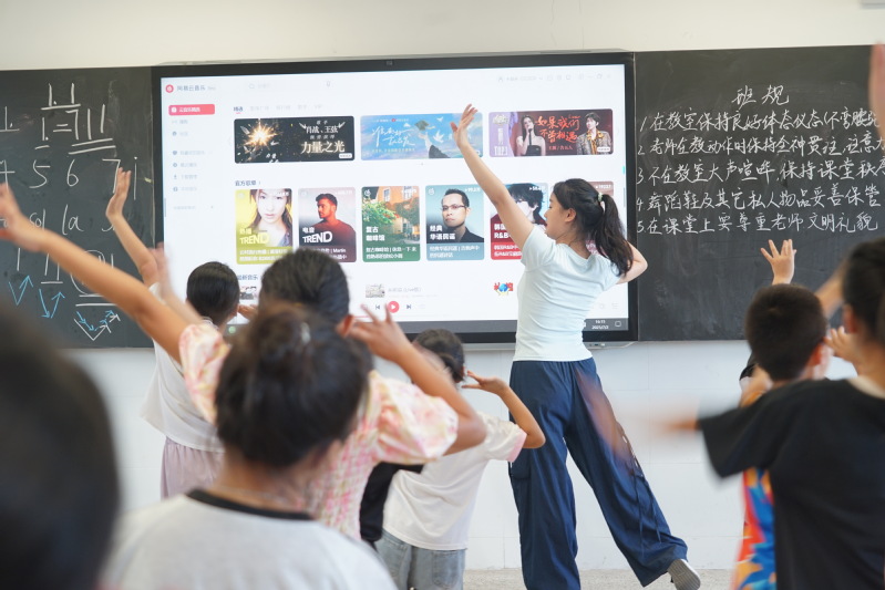 马文杰以《世界赠予我的》为教学曲目,将旋律学唱与情感表达相结合。课堂中,他带领孩子们逐句练习音准与节奏,通过歌声让孩子们感受音乐传递情感的力量,在学唱中释放童真,用声音表达内心的纯粹与美好。
