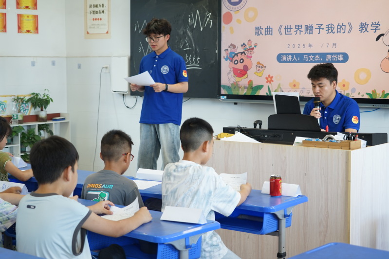 马文杰以《世界赠予我的》为教学曲目,将旋律学唱与情感表达相结合。课堂中,他带领孩子们逐句练习音准与节奏,通过歌声让孩子们感受音乐传递情感的力量,在学唱中释放童真,用声音表达内心的纯粹与美好。