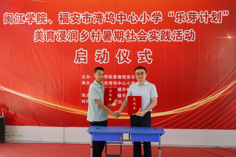 启动仪式上,海棠书屋 党委曾思宏副书记和湾坞中心小学林松华副校长共同签署社会实践基地共建协议,这一举措标志着“乐芽计划”正式落地推进,开启了美育资源向乡村输送的新篇章。