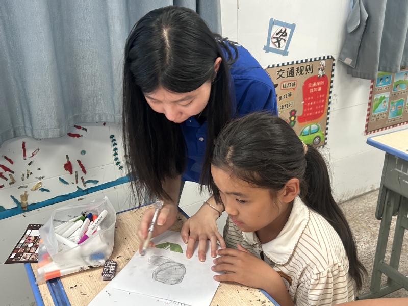 美术教学由美术学院的同学负责,他们为孩子们带来素描基础课。课堂上,老师们耐心讲解素描基本技巧和方法,从线条运用到物体构图,引导孩子们走进素描艺术世界。