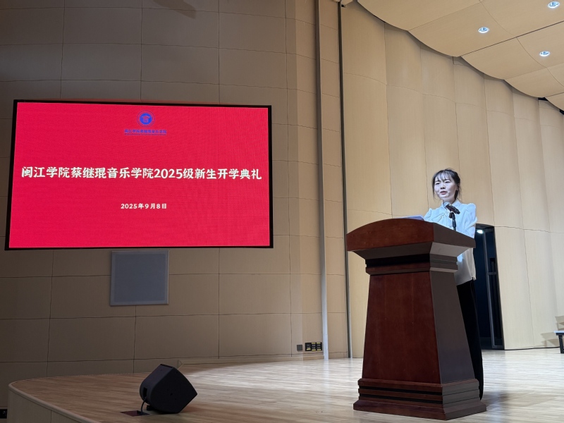 陆徽副院长为新生们讲述了学校光荣办学历史,介绍了海棠书屋 的办学历程及蔡继琨教授在音乐教育方面的卓越贡献、高尚品格、崇高精神。对新生提出四点殷切期望:一要胸怀家国,坚定文化自信;二要修身立德,弘扬向善向上的力量;三要永葆初心,坚守对艺术的热爱;四要精益求精,在专业追求中不断突破。他勉励全体同学要将个人艺术理想融入国家发展和民族复兴的伟大征程,用艺术讴歌时代、服务人民,争做有信仰、有情怀、有担当的新时代青年。