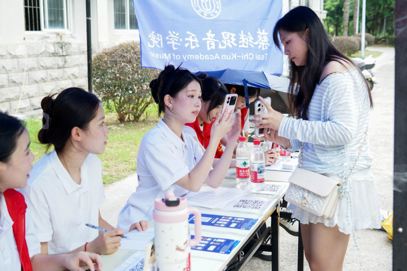 迎新当天,“音乐蓝”“党建红”“勤工绿”相互交织,成为新生入学记忆中最温暖的底色。