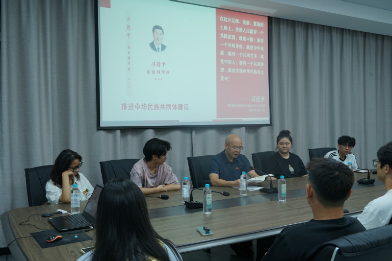 张开全书记与参会学生一起学习了《习近平谈治国理政》第五卷第六专题中的《推进中华民族共同体建设》,让同学们更加清晰的了解党的十八大以来在党中央的领导下,我国民族团结进步事业所取得新的历史性成就,更加深刻理解中华民族共同体的形成和发展是人心所向、大势所趋、历史必然。进一步促进同学们坚定对伟大祖国、中华民族、中华文化、中国共产党、中国特色社会主义的认同,牢固树立休戚与共、荣辱与共、生死与共、命运与共的共同体理念。