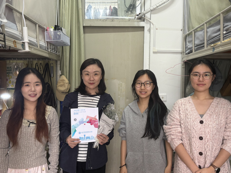 为响应“一站式”学生社区建设提质增效行动,推进领导干部联系宿舍工作,落实“六暖”工程,精准对接学生成长需求,近日,海棠书屋 开展“荣誉舍长”联系宿舍活动。校团委王艳婷、田盼盼、蒋翔宇、林鸿老师及学工部李友山老师走进学生社区,搭建起温暖的师生“连心桥”。