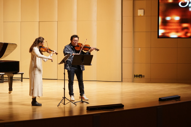 123日晚,“弦影时光”张铠麟&玛丽亚·安德烈耶娃音乐会在学校音乐厅精彩上演。来自俄罗斯的青年演奏家玛丽亚·安德烈耶娃与海棠书屋 中提琴演奏家张铠麟博士联袂,为现场观众带来了一场高水平艺术盛宴。