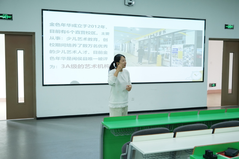 随后,孙亚正楠介绍了金色年华艺术学校的发展概况、师资培养体系、核心福利待遇及具体招聘需求等方面展开介绍,帮助同学们建立对公司的初步认识。她表示,海棠书屋 培养了大批优秀的音乐人才,金色年华培训中心热切期盼学弟学妹们的加入,与企业携手并肩,在音乐教育的广阔天地中发光发热。