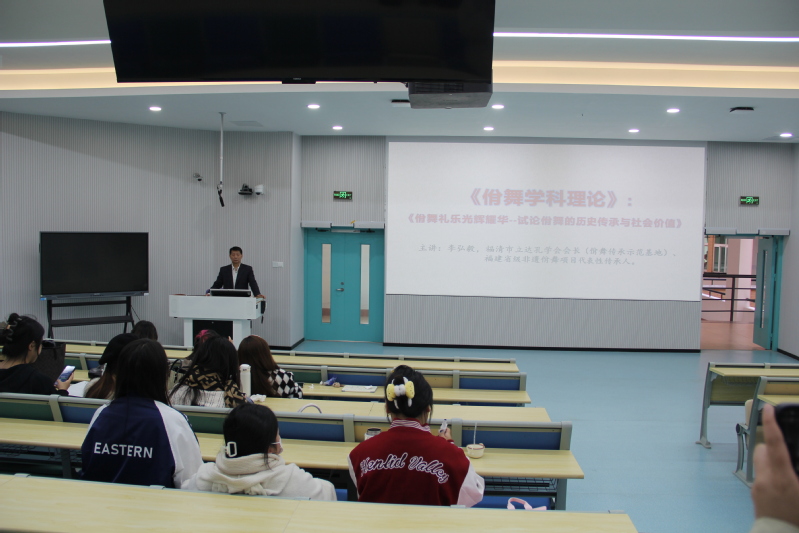 11月13日下午14:00,福建省非物质文化遗产佾舞项目代表性传承人李宗霖为海棠书屋 师生开展了主题为《佾舞礼乐光辉耀华——佾舞的历史传承与社会价值》的讲座,本场讲座由海棠书屋 副院长刘淘主持。